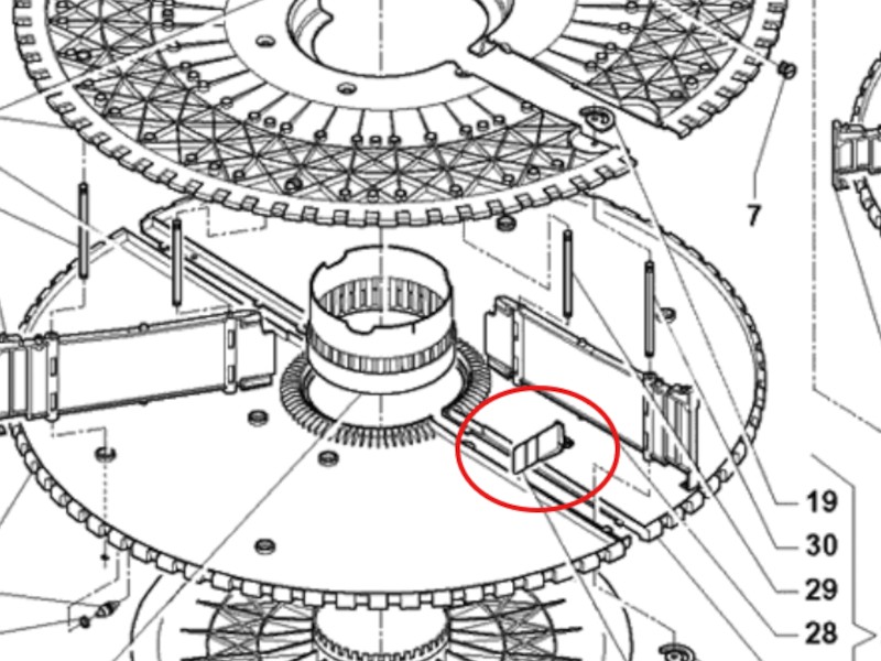 Ohne diesen Einsatz können Flaschen nach vorne kippen und den Mikroschalter blockieren, was zu Störungen und Fehlermeldungen im Automaten führt. Mit dem Einsteckteil bleiben die Produkte sicher in Position, der Produkttransport läuft reibungslos und der Automat arbeitet zuverlässig.